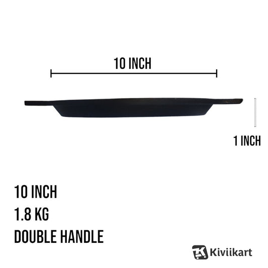 Cast Iron Pre Seasoned Round Grill Skillet Pan Double Handle for Sandwich, Barbeque, Tandoor|Dia- 10 Inch (25.4 Cm) 1.8 kg| Gas & Induction Compatible | Naturally NonStick |1.5L